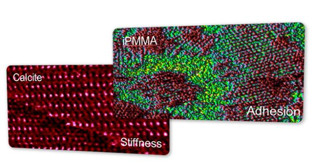 點(diǎn)缺陷分辨率的方解石的剛度圖像。圖像尺寸為15 nm(面板 1)。亞分子分辨率級(jí)別的iPMMA 薄膜的粘附力分布圖像。 圖像大小為100 nm(面板 2)。樣品由馬丁-盧瑟-哈勒-維滕貝格大學(xué)的瑟恩-阿爾布雷希特教授提供。