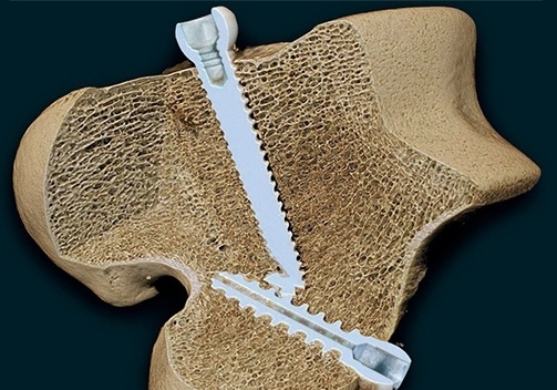 帶有兩個鈦骨釘?shù)?/span>60mm羊骨,骨釘直徑5mm。